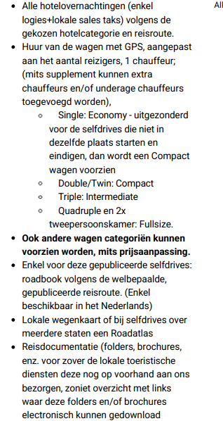 Vrije voormiddag, eventueel snel nog wat winkelen en daarna rit naar de luchthaven en inleveren van de huurwagen. Einde van deze fantastische trip. Terugvlucht of individuele verlenging mogelijk mits supplement.