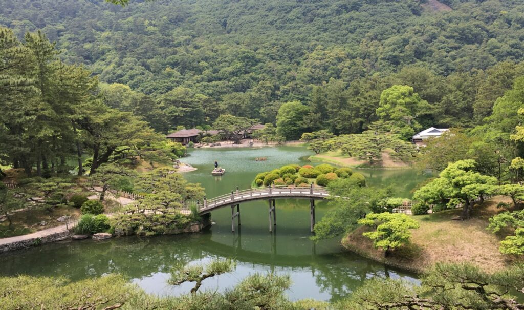 Wandel verder naar de prachtige Korakuen-tuinen, een van de mooiste tuinen van Japan, bereikbaar via een bijzondere brug over de Asahi-rivier.