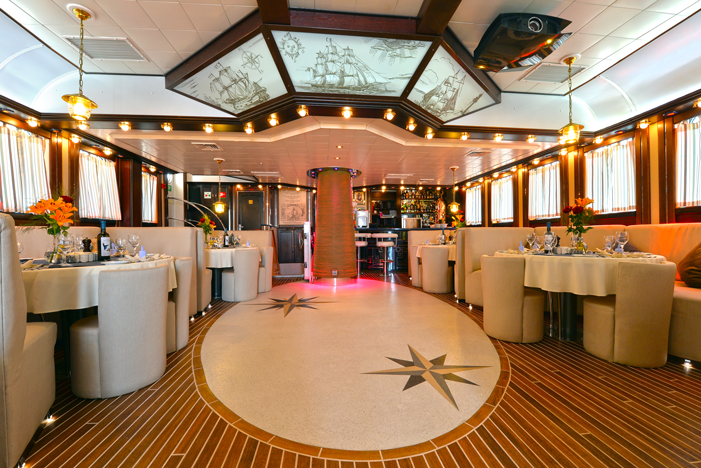 Het schip is helemaal opengesteld naar de zee toe. De buitenruimtes bieden verschillende mogelijkheden om zich te ontspannen. Op het zonnedek kan men zich verfrissen in een klein zwembad met bubbelbad en op het panoramadek in de buitenbar kunnen de passagiers hun dorst lessen. Op hetzelfde dek biedt het uitmuntende restaurant met zijn gezellige inrichting een royale en zorgvuldig bereide lokale gastronomie.